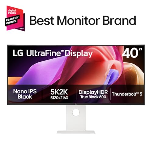 LG 40U990A-W 40-inch Ultrafine 5K2K WUHD (5120 x 2160) Nano IPS Curved Monitor, Thunderbolt 5, DisplayHDR 600, Built-in Power, Speaker, 120Hz, HDMI 2.1, DP 2.1, USB C, Tilt/Height/Swivel Stand, White