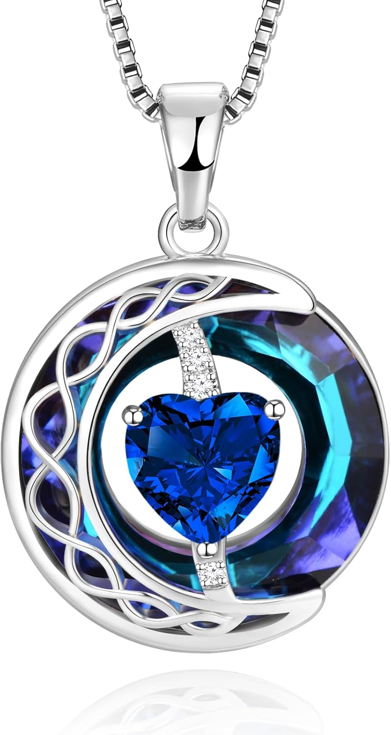LIANYU Necklace for Womens Blue Sapphire Necklace Moon Pendant S925 Sterling Silver Crystal Jewelry for Women Pendant Birthday Gifts for Wife Gifts Valentine Anniversary