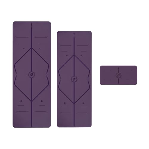 LIFORME Original Mat & Travel Mat & Yoga Pad Bundle Pack – Patented Alignment System, Eco-Friendly, Non-Slip Warrior-Grip, Made with Natural Rubber, Thick, Sweat Resistant, Comfortable – PURPL/PUR/PUR