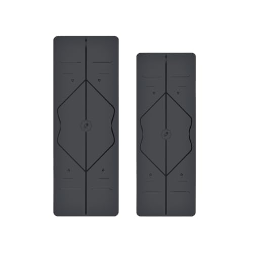 LIFORME Original Yoga Mat & Travel Mat Bundle Pack – Patented Alignment System, Eco-Friendly, Non-Slip Warrior-Grip, Made with Natural Rubber, Thick, Sweat Resistant, Comfortable – Grey/Grey