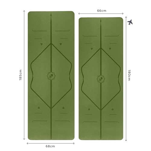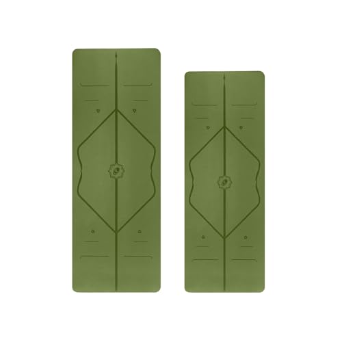 LIFORME Original Yoga Mat & Travel Mat Bundle Pack – Patented Alignment System, Eco-Friendly, Non-Slip Warrior-Grip, Made with Natural Rubber, Thick, Sweat Resistant, Comfortable – Olive/Olive