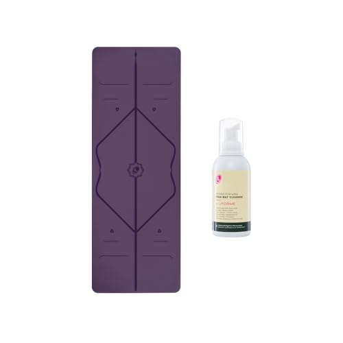 LIFORME Original Yoga Mat & Ultimate Everyday Yoga Mat Cleaner- Bundle Pack – Patented Alignment System, Eco-Friendly, Non-Slip Warrior-Grip, Thick, Sweat Resistant, Comfortable – Purple