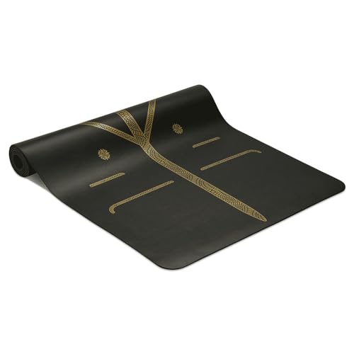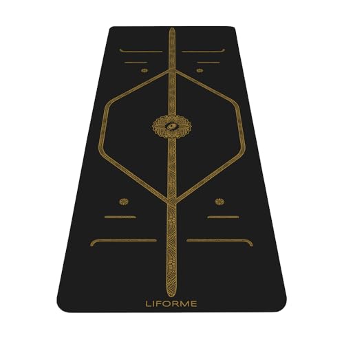 Liforme Printed Yoga Mat Collection – Free Yoga Bag Included – Patented Alignment System, Warrior-like Grip, Non-Slip, Eco-friendly, Sweat-resistant, Long, Wide and Thick for Comfort (Black & Gold)
