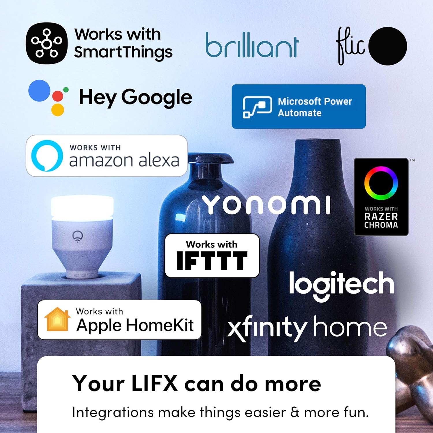 Meet LIFX Color 1100lm. The LIFX Color is the brightest LIFX product, packing a serious 1100 lumen punch. This light features billions of colors as well as a huge cool-to-warm range of whites. And for anyone who loves an upgrade, take advantage of endless integration options.