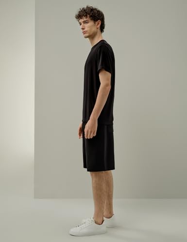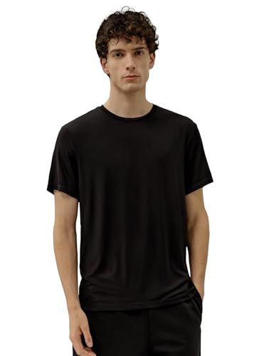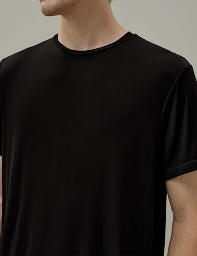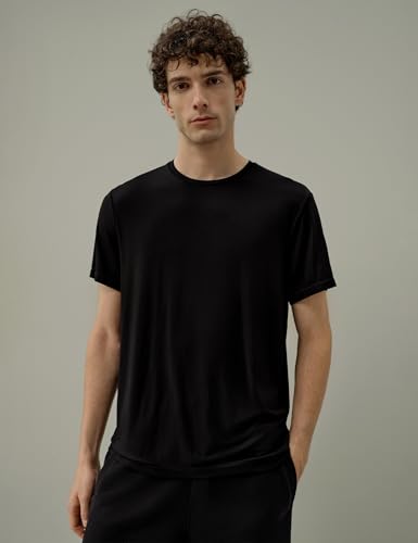 LilySilk Silk Jersey Men’s T-Shirt Regular Fit Crewneck Short Sleeve Plain Tee for Work Holiday Comfort Black M