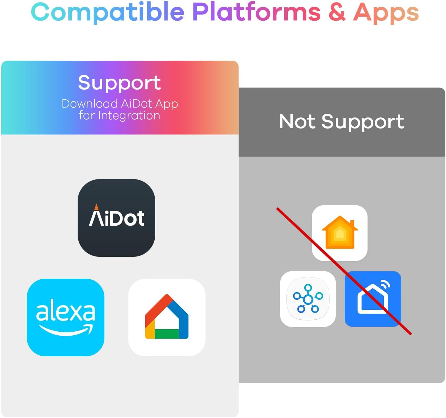 【Wi-Fi & Bluetooth Dual Connection】Wifi Bluetooth light bulbs experience faster and more reliable connectivity (2.4GHz Wi-Fi ONLY, NOT SUPPORT 5GHz) Control your lights locally via the AiDot App without a Wi-Fi connection. (INITIAL SETUP REQUIRES BOTH WI-FI AND BLUETOOTH)