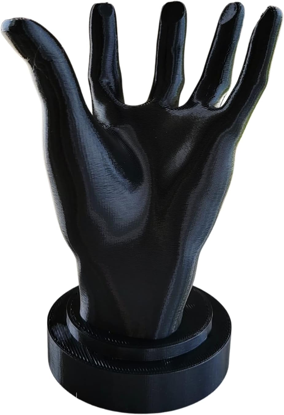 Living Hand Smart Home Speaker Stand!! Available in various colors. Color in the photo is a Sparkle Black. This stand transforms your Google HomeNest MiniEcho dot into a cool and fun piece! Perfect gift for any fan who has a smart home speaker. The hand stands upright and the speaker sits on top. Simple, elegant, and unique design. The stand is made out of bio-friendly PLA (Polylactic Acid) plastic and is accomplished by printing plastic layer by layer, very slowly. PLA is considered the most ‘earth-friendly’ plastic since it is 100percent biodegradable and not toxic. We use high-quality printing options with large infill and out perimeter shells. The stand is printed in 1 piece, assembly is not required. All 3D Printed products sold are made through Plastic Extrusion, meaning plastic is heated and layered upon itself to build the final part. As a result, the completed product will sometimes have imperfections as part of the printing process, also known as layer lines x Please note all 3D printed items are unique and no two products are the same. The surface will not be perfectly smooth as you can see the layers of the object and there might be little bumps here and there as this is a property of this type of 3D printing. The color of the item may vary slightly from the display picture due to the filament supplier. Disclaimer This is not an officially licensed product and is only considered FAN ART, the item was modeled and remixed.
