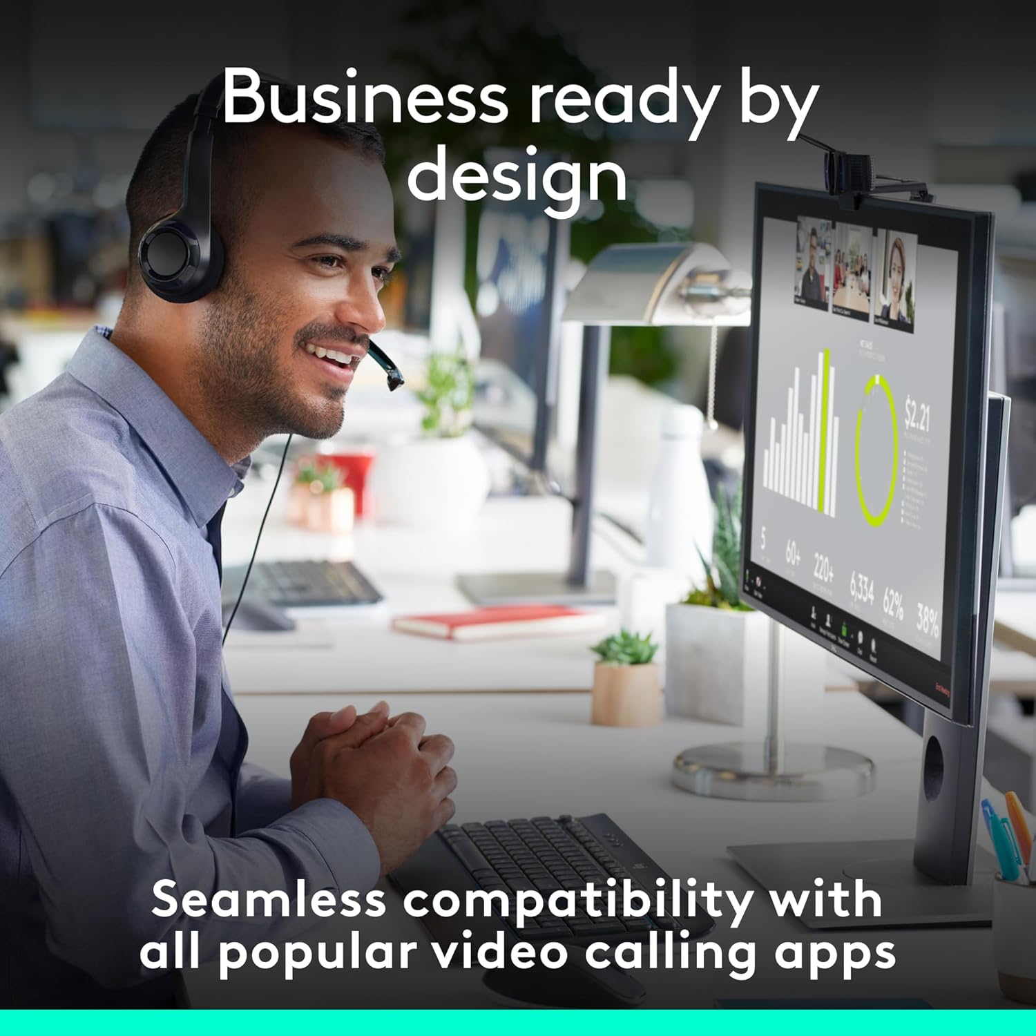 C920e is a work-from-anywhere webcam that delivers HD video meetings that look better than most laptop built-ins at a price point that’s ideal for mass deployment. The 78° diagonal field of view displays individual users in a well-balanced visual frame while two integrated omnidirectional microphones are optimized to capture your audio from up to one meter away. Built-in HD autofocus ensures you’re seen clearly when on camera, while an attachable privacy screen flips up and down to cover or expose the lens. C920e is designed with a sturdy, adjustable clip that makes it easy to mount on any laptop or external monitor. Plus it has a ¼” thread to enable mounting to a tripod. C920e is certified for Zoom®, TAA compliant and works with all popular video calling applications such as Microsoft Teams®, Google Meet™ and Cisco Webex® to ensure compatibility and seamless integration in the workplace.