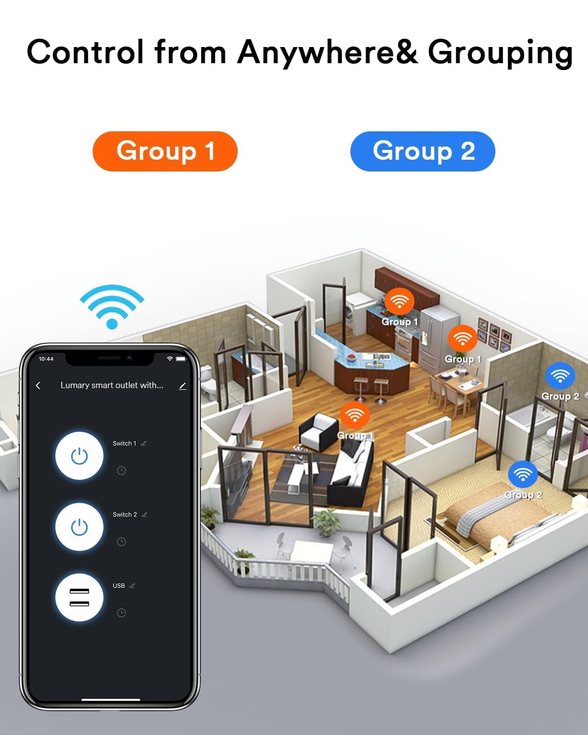 Unlike standard wall sockets, this remote control outlet lets you manage each power source separately—USB-A, USB-C, and AC plug. Monitor power consumption and switch each one on/off in real time from your smartphone