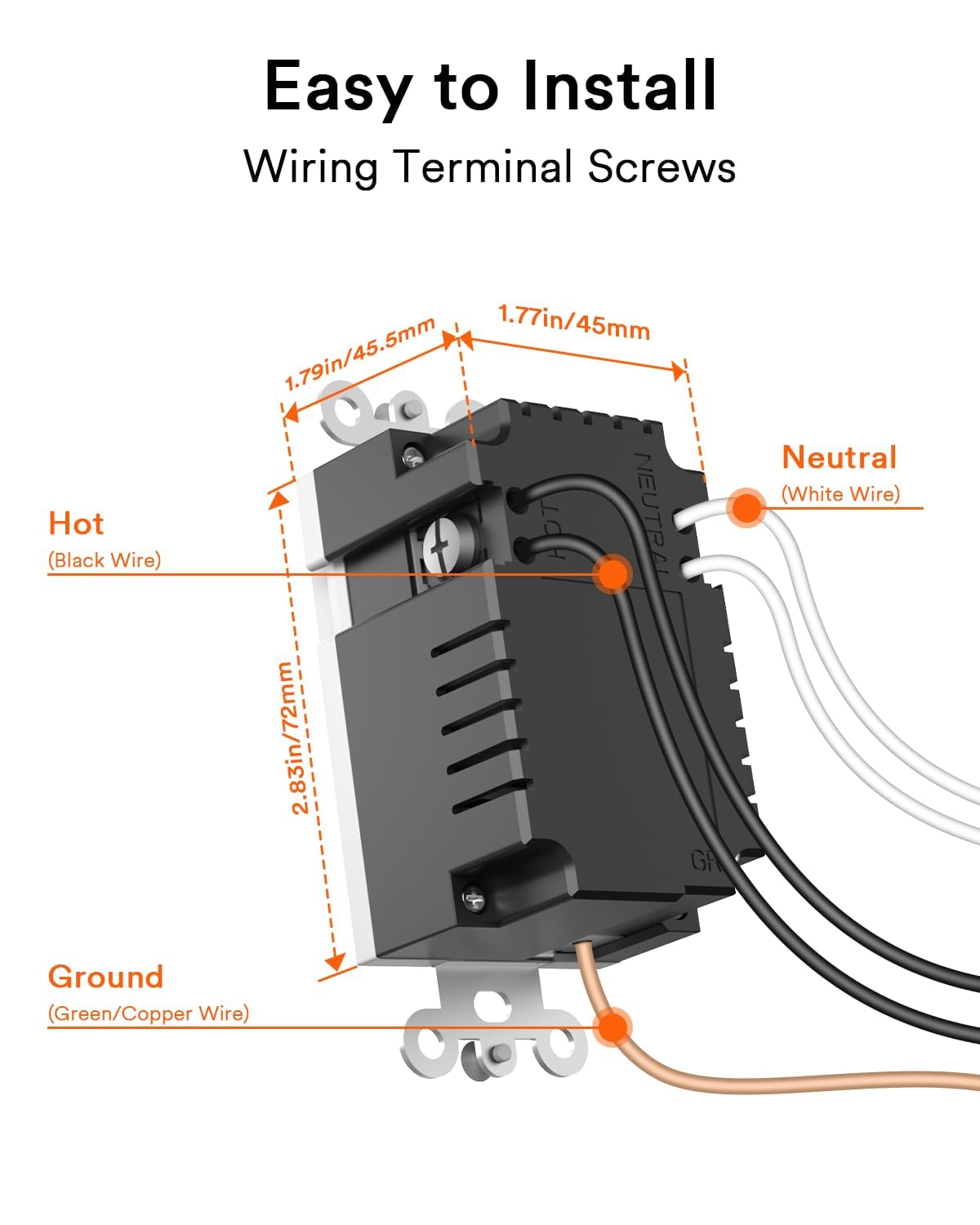 This smart wall socket installs easily with side or back wiring. Includes pre-loosened screws and fits standard wall plates. Whether replacing an old outlet or upgrading a new space, it’s a simple step to smarter living