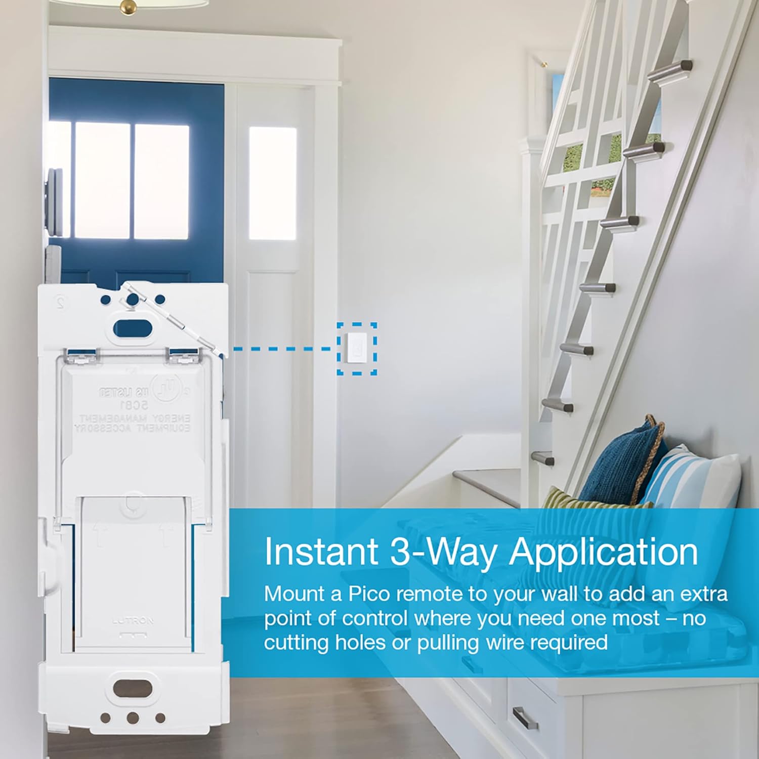 EASY 3-WAY SETUP: Create a 3-way using this Lutron Caseta Dimmer Switch by mounting the Pico to any wall surface—no cutting or wiring. Replace existing switches by installing the Pico/bracket over the backbox (PICO-WBX-ADAPT sold separately)