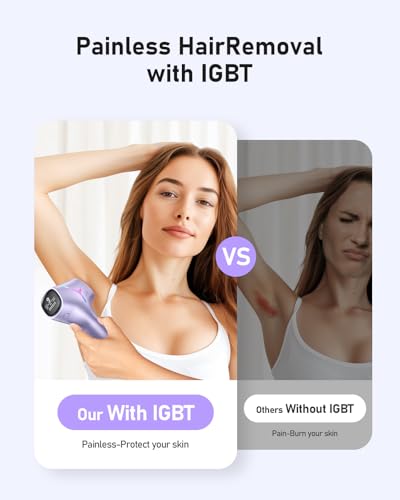 【Gentle and Nearly Painless】Advanced double IGBT pulse technology delivers consecutive gentle pulses, greatly reducing discomfort compared to traditional single-pulse devices. The high-speed flashes and built-in skin sensor ensure a safe, virtually pain-free experience at home.
