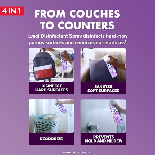 DISINFECTING AND SANITIZING SPRAY: Lysol disinfects hard non-porous contact surfaces and sanitizes soft surfaces; This multipurpose spray can be used in the home and kitchen, to disinfect toys, couches, counters, bathrooms, and over 100 more surfaces