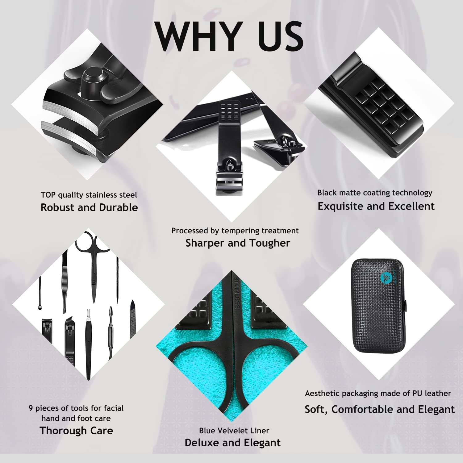 With more than 15 years of unshaken focus on consumer experience and details,HANTEKAS has become a first-rate brand dedicated itself to beauty&personal care fields.Our manicure set are made of high quality stainless steel/carbon steel tools, elegant and high quality leather, PU, fabric etc. All tools are polished, ground for sufficient times and elaborately treated to function well, comfortable,reliable and durable.