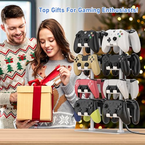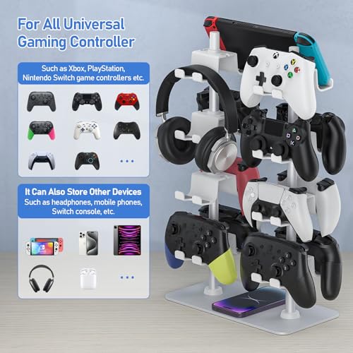 MANMUVIMO Controller Holder for 16 Xbox PS5 PS4 Gaming Controller, Video Game Controller Holder Headphone Stand for Desk, Gamer Gifts for Men, Gaming Room Accessories Maximum Organizer (White)