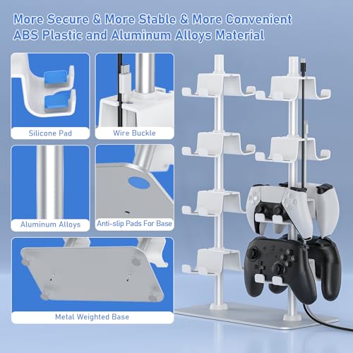 🎮︎【Weighted Metal Base Provides Maximum Stability】The controller stand for desk base is designed with a weighted iron to hold the display firmly on the desktop, even if the game stand is loaded with 16 heavy controllers, it will remain completely stable and provide protection for your precious controllers. Perfect for use in the gaming room, office, studio, bed room or next to the TV. In addition, the connecting tube of the gaming organization is made of aluminum alloy, which greatly extends its service life.
