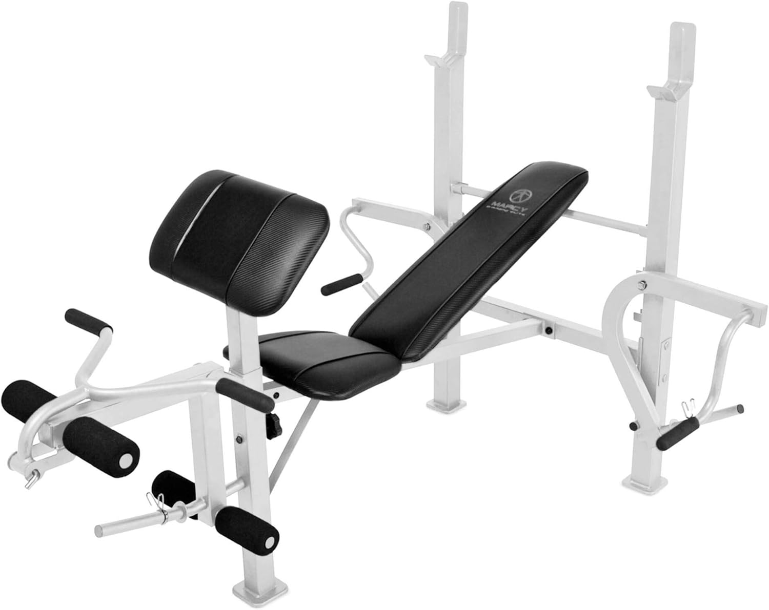 The Marcy Diamond Elite Standard Bench is an extremely versatile workout bench. This compact machine has space to work out your chest, shoulders, biceps, legs, and more. With an adjustable preacher curl pad to bulk up your arms, independent fly arms to beef up those pecs, dual-function leg developer work out your legs, and an adjustable 4 position back pad this weight lifting bench can work all of your major muscle groups. Meet all of your fitness needs as you switch things up between decline, flat, incline, and military press positions. Have a carefree workout knowing that the heavy-duty steel tube frame is in it for the long haul. With a powder-coated finish, this bench is ready for any challenge. The multipurpose design of the Marcy Diamond Elite Standard Bench makes this a great addition to any home gym.