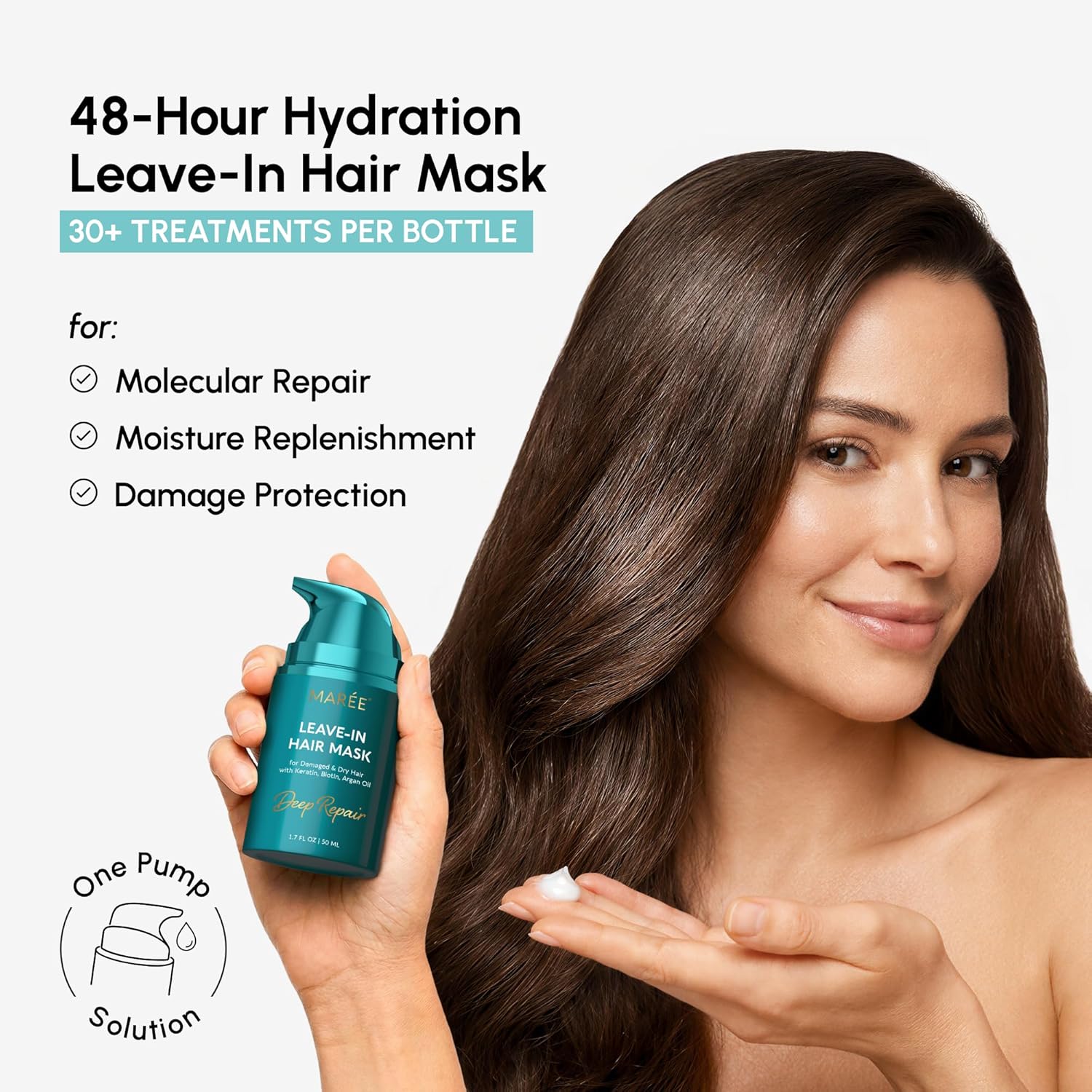 Leave In Hair Mask with One-Pump Precision – MAREE repair hair mask is a highly concentrated hair mask leave in formula designed for visible results with a single pump. This innovative hairmask delivers targeted care without rinsing or heaviness.