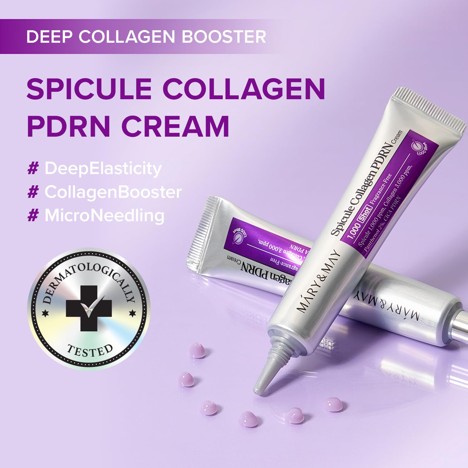 Mary&May Spicule Collagen PDRN Cream – Korean Face Moisturizer with Marine Spicules & French Collagen – Plumping Barrier Elasticity Treatment, Ceramide Panthenol for Sensitive Skin, 15g / 0.5 oz