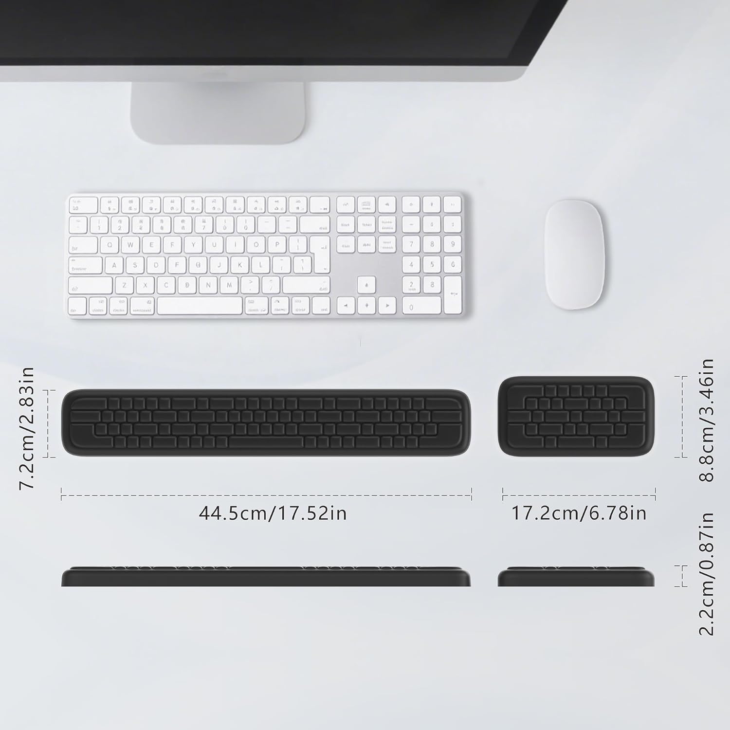 Fits Full-Size & 96% Keyboards (17.7″ x 2.8″ x 0.9″): This keyboard pad with wrist support is designed specifically for standard keyboards., the 45cm length provides full coverage without awkward overhang. The 2.8‘’ width and 0.9‘’ height offer balanced support for most hand sizes, ensuring your wrists stay properly aligned. (No more struggling with keyboard wrist support that are too short or too tall!)