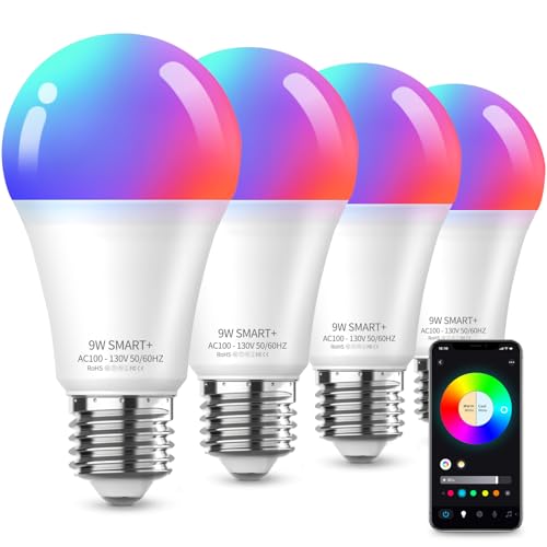 Meliya LED Smart Light Bulbs, Color Changing Dimmable & Timing Smart WiFi and Bluetooth Bulb, Compatible with Alexa and Google Assistant, RGBWW A19, 9W 800 Lumens, Music Sync, Voice Control (4 Pack)