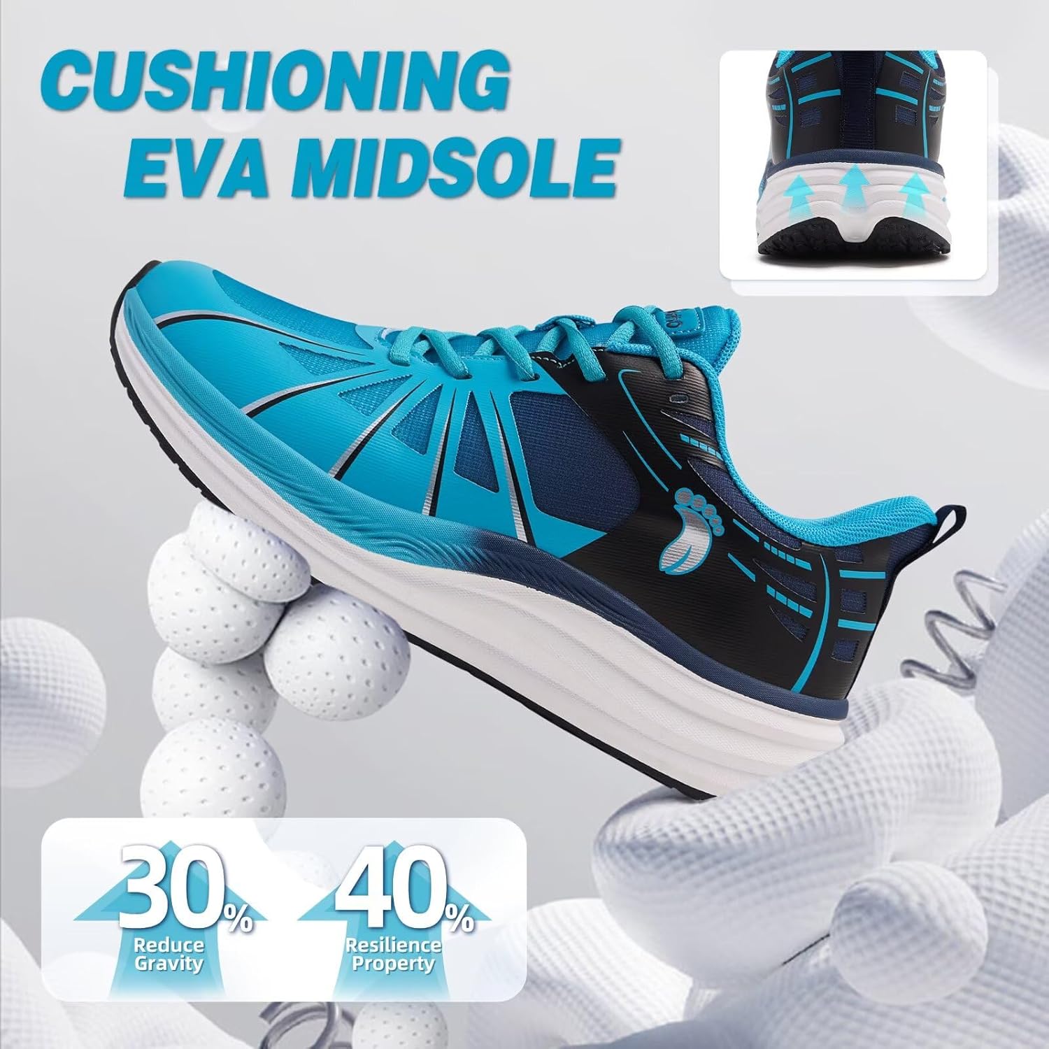 Lightweight, breathable road running shoes, cushioned support for speed and comfort. Fit for road or trail. Run farther, feel better!