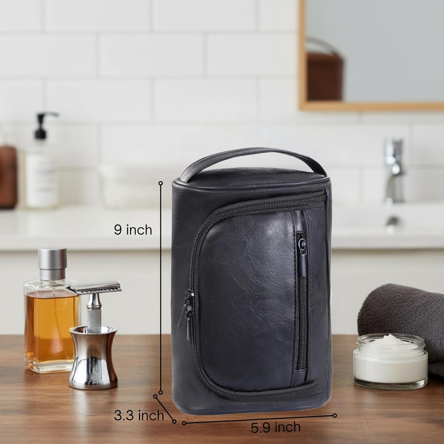 【𝐒𝐥𝐢𝐦 & 𝐄𝐟𝐟𝐢𝐜𝐢𝐞𝐧𝐭 𝐃𝐞𝐬𝐢𝐠𝐧】 Specifically engineered for the minimalist man. Size 9×5.9×3.3 inch ,fits your razor, travel-size cologne, and deodorant perfectly. Sized for MALE essentials.(𝐍𝐨𝐭𝐞: 𝐓𝐡𝐢𝐬 𝐬𝐥𝐞𝐞𝐤 𝐝𝐞𝐬𝐢𝐠𝐧 𝐢𝐬 𝐨𝐟𝐭𝐞𝐧 𝐟𝐨𝐮𝐧𝐝 𝐭𝐨𝐨 𝐜𝐨𝐦𝐩𝐚𝐜𝐭 𝐟𝐨𝐫 𝐦𝐮𝐥𝐭𝐢-𝐬𝐭𝐞𝐩 𝐟𝐞𝐦𝐚𝐥𝐞 𝐬𝐤𝐢𝐧𝐜𝐚𝐫𝐞 𝐫𝐨𝐮𝐭𝐢𝐧𝐞𝐬)