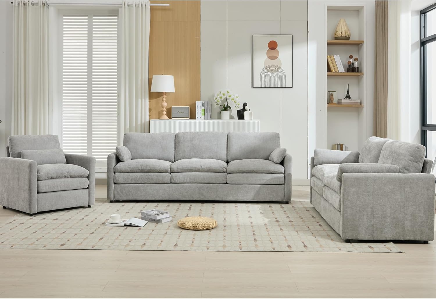 Specification: Merax 6 Seats Sofa Set, 3 Pieces Oversized Cozy Sofa Set with Double Plush Cushion, Comfy Upholstered Cloud Couches for Living Room, Light Grey
