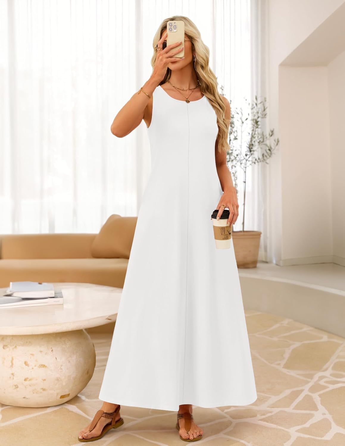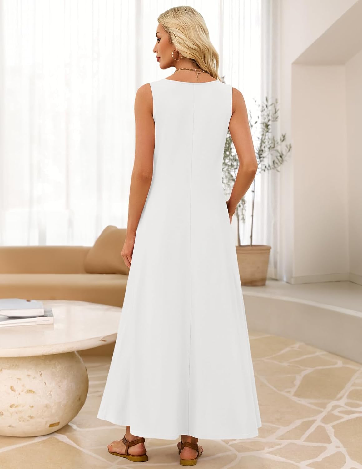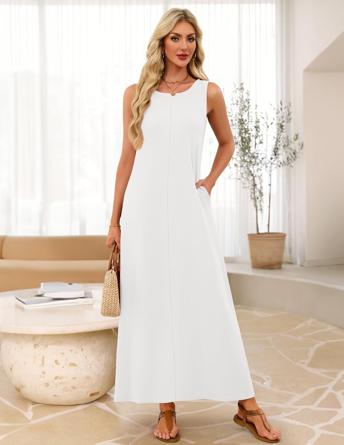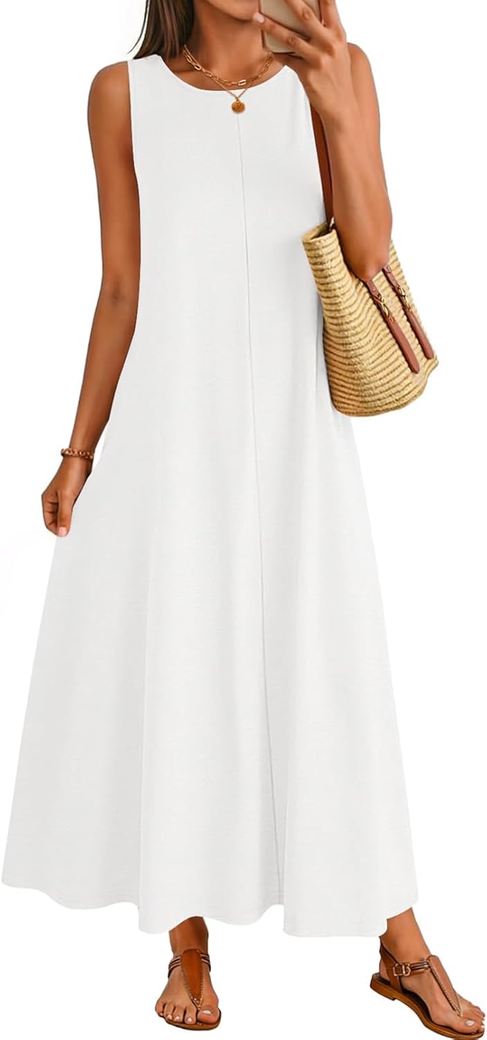 MEROKEETY Women’s 2026 Summer Maxi Dress Sleeveless Crewneck Casual Loose Beach Vacation Basic Long Sundress