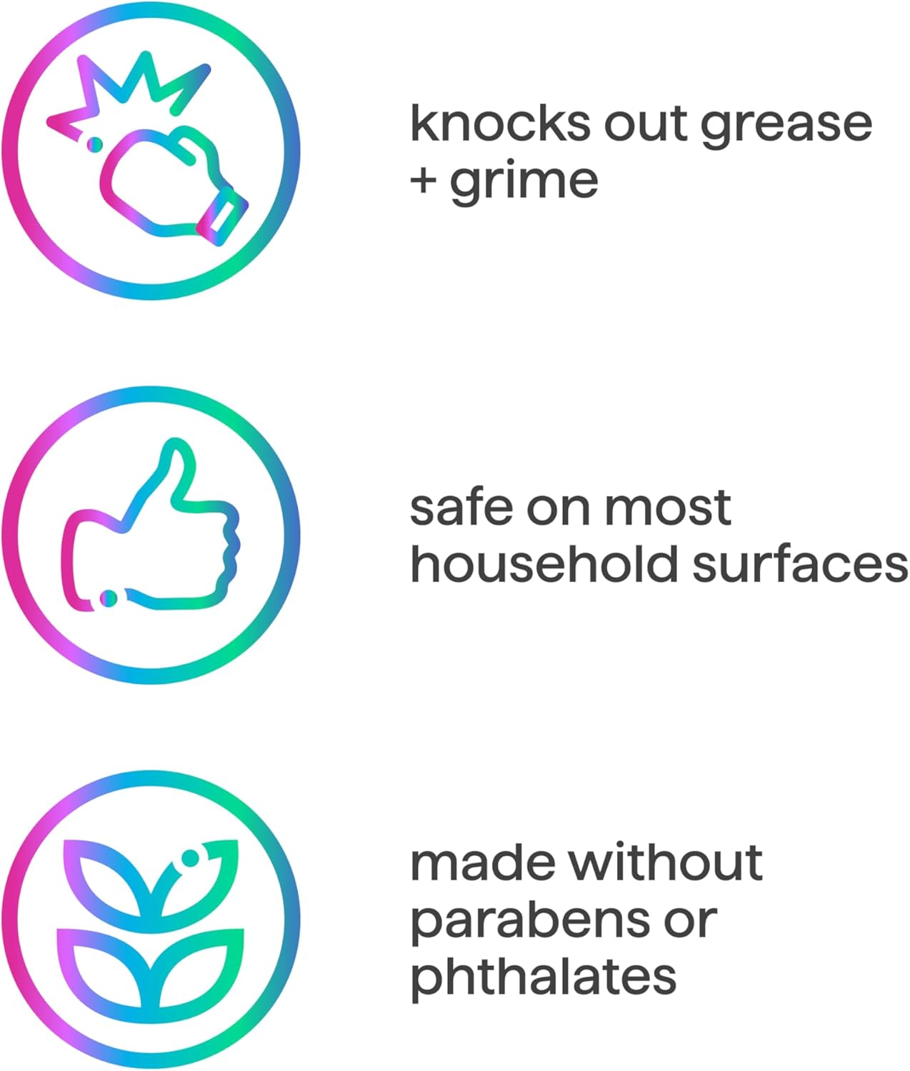 Grease and grime don’t stand a chance. not with powerful cleaning agents in your grasp. with a formula made with thoughtful ingredients and made without parabens, you can pack a punch that cuts through dirt and gunk. Ah, the pleasant scent of victory.