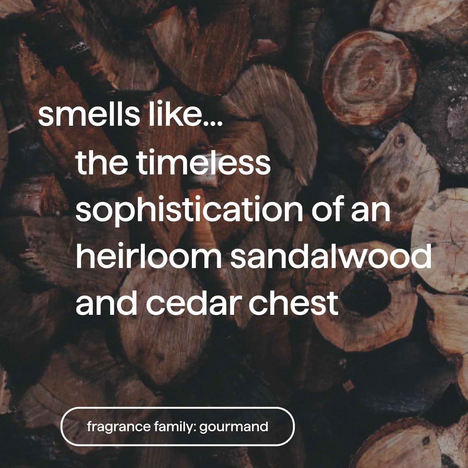 Smells like the timeless sophistication of an heirloom sandalwood and cedar chest