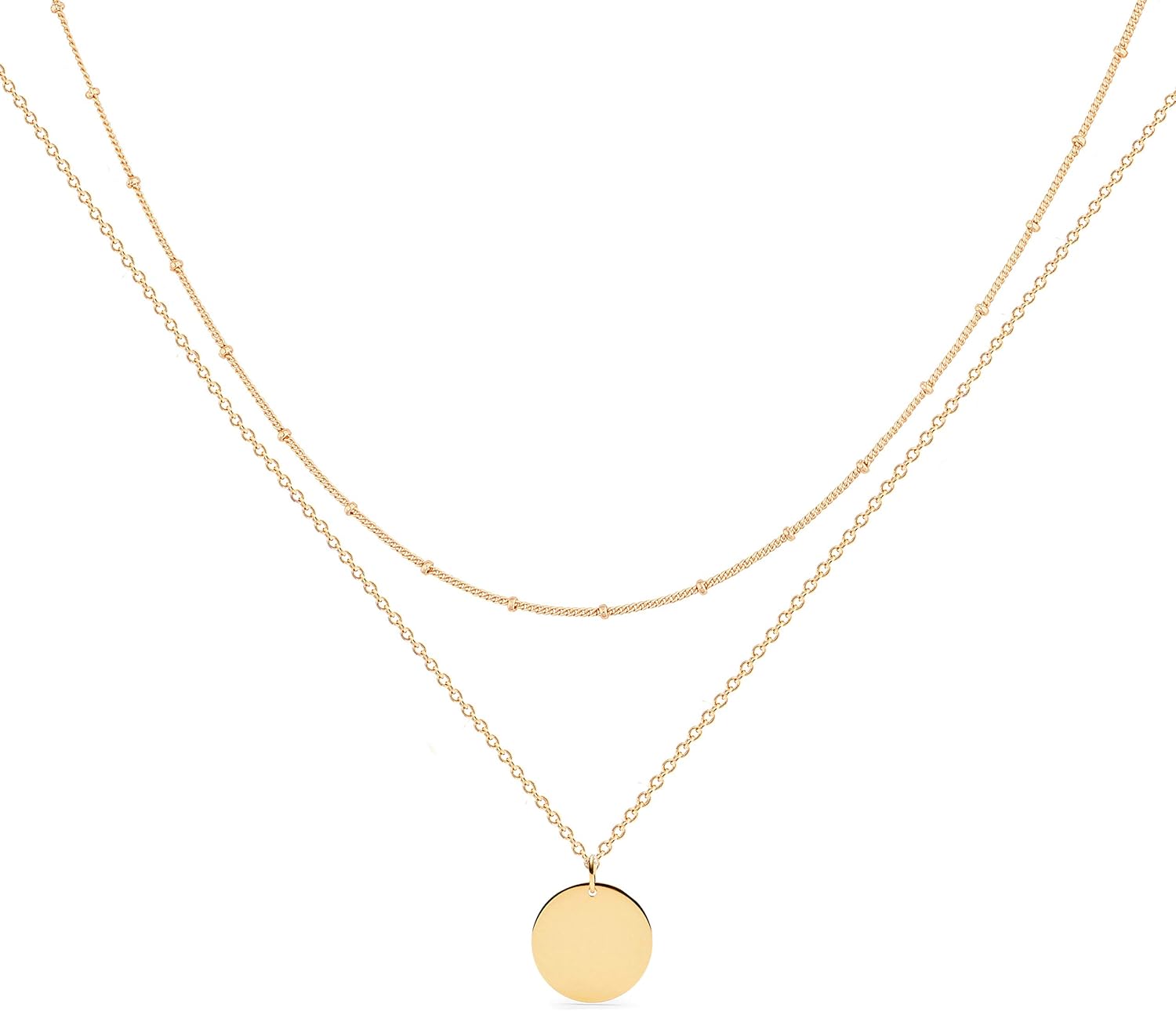 MEVECCO Layered Heart Necklace Pendant Handmade 18k Gold Plated Dainty Gold Choker Arrow Bar Layering Long Necklace for Women