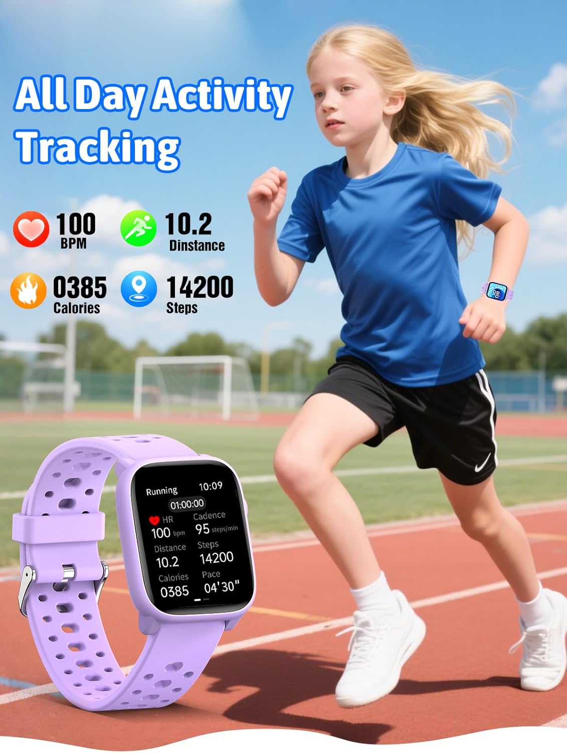 Vibrant HD Touchscreen & Upgraded Design: Features a modern 1.85-inch ultra-clear display for vivid visuals. Kid-Friendly & Comfortable: Made with safe materials and a lightweight band for all-day comfort. Appeals to kids with a trendy, durable style.