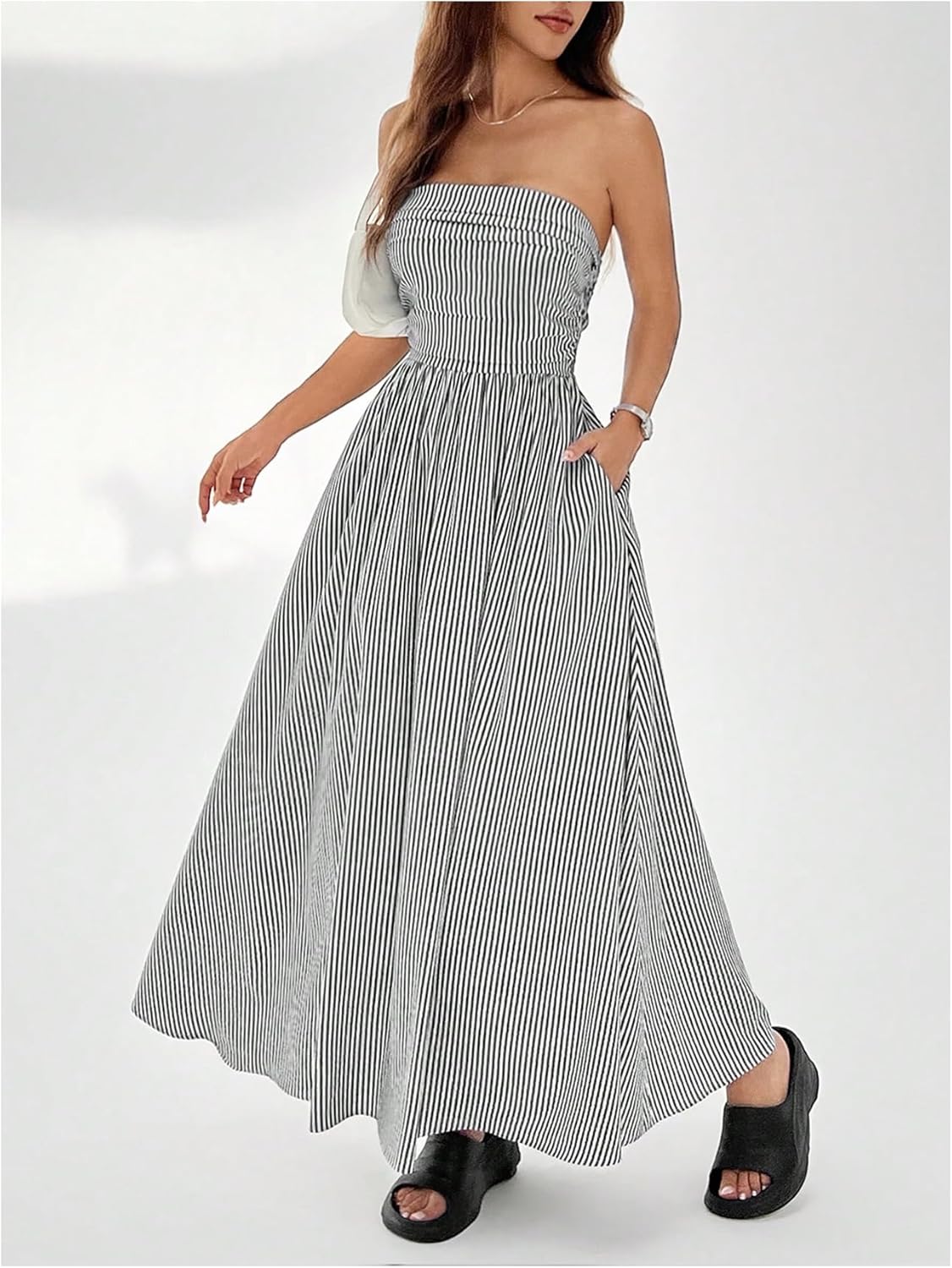 Milumia Women’s Striped Strapless Maxi Dress Summer Casual Tube Top Long Dresses with Pocket
