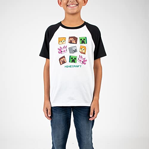 CUSTOM DESIGN: Images of the Minecraft creeper and character heads of Steve, Alex, axolotls, creepers, and skeletons decorate the front of these graphic tees. Fans of the Minecraft video games will love these fun designs.