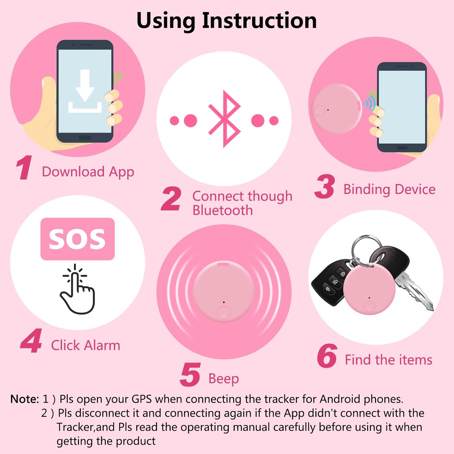 Mini GPS Tracker C, Key Item Finder Locator,No Monthly Fee App for iOS/Android 2023 Latest,Portable Anti-Lost Bluetooth Tag Item Tracker for Luggages/Kids/Pets/Phone/Wallet/Bag-1Pcs-Pink