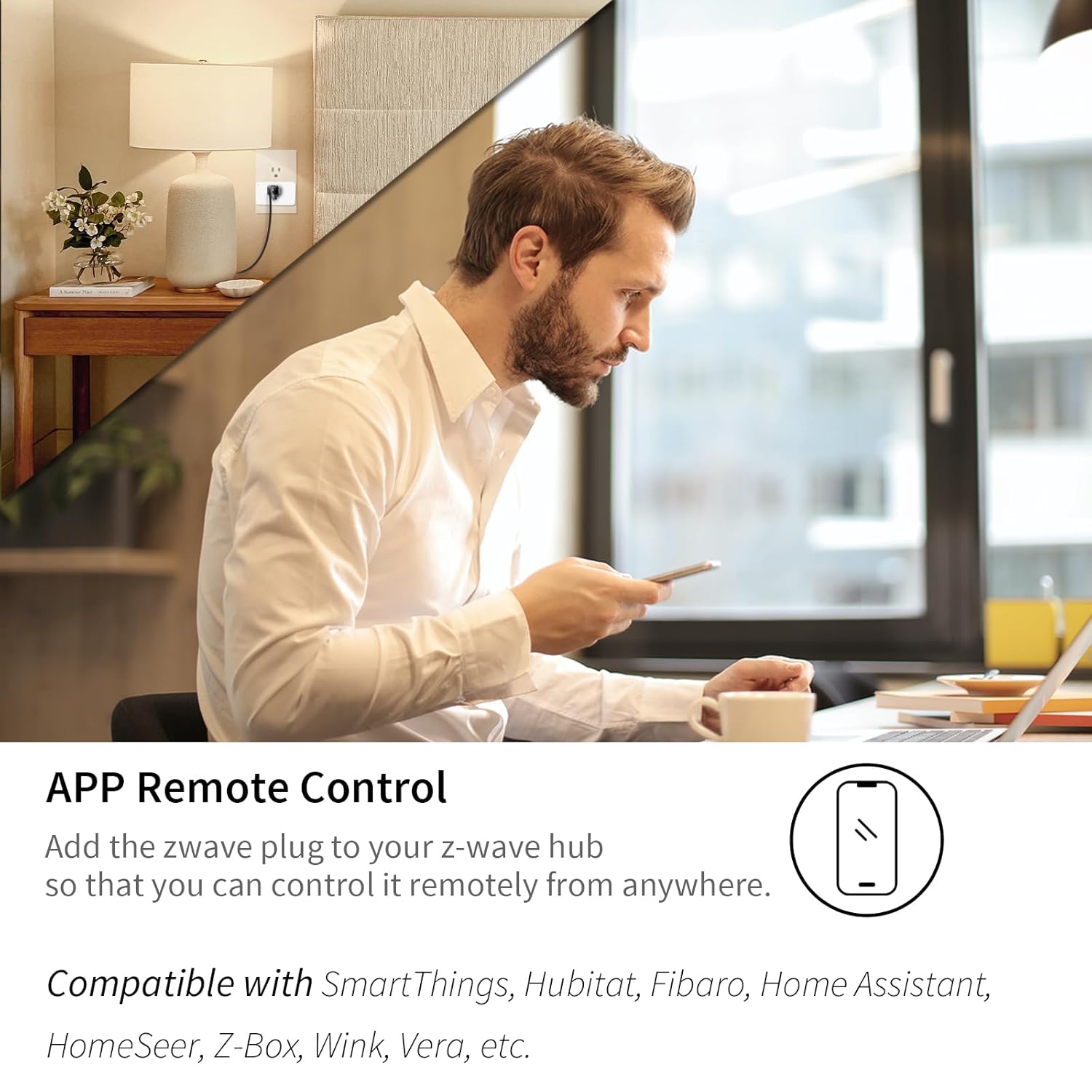 [Control from Anywhere] Free your hands! Connect the smart plug with the APP corresponding to the Z-wave hub on your smartphone, tablet or laptop, and you can control the device anytime and anywhere. This zwave smart outlet can be controlled via Alexa and Google Home (z-wave hub required). After connecting the smart plug to the voice assistant, you can control the device through voice commands.