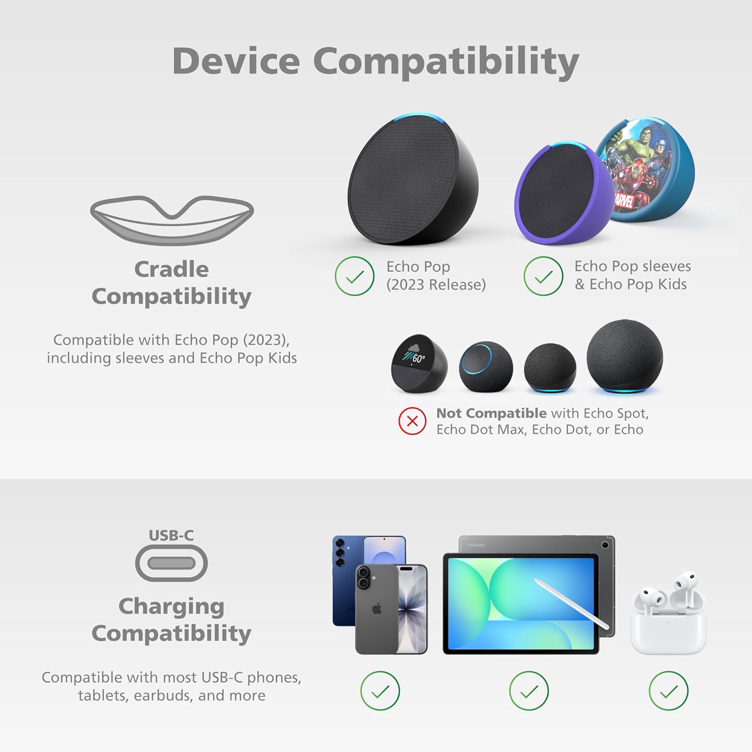 CRADLE DESIGNED FOR ECHO POP: Compatible with Amazon Echo Pop (not compatible with other Echo devices).