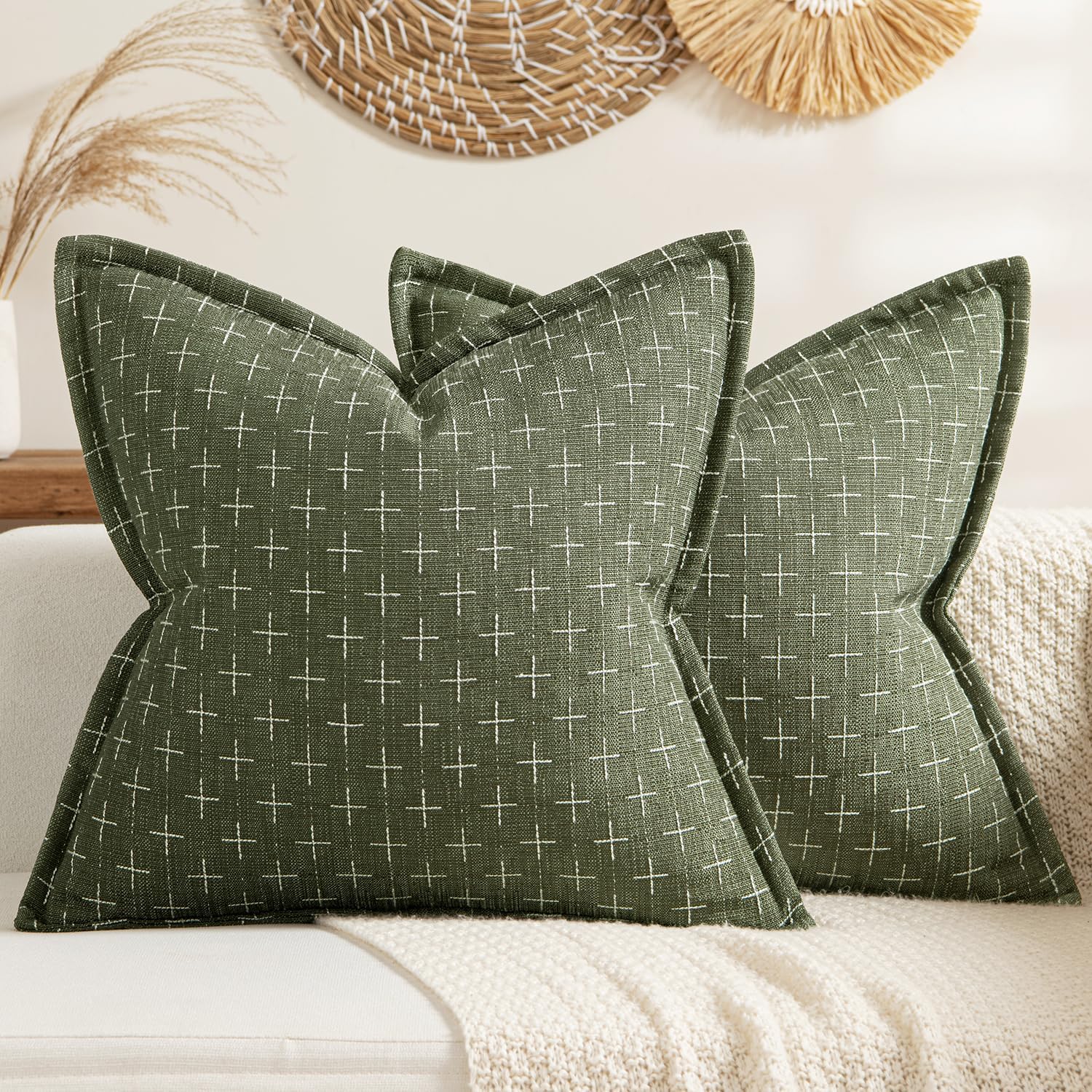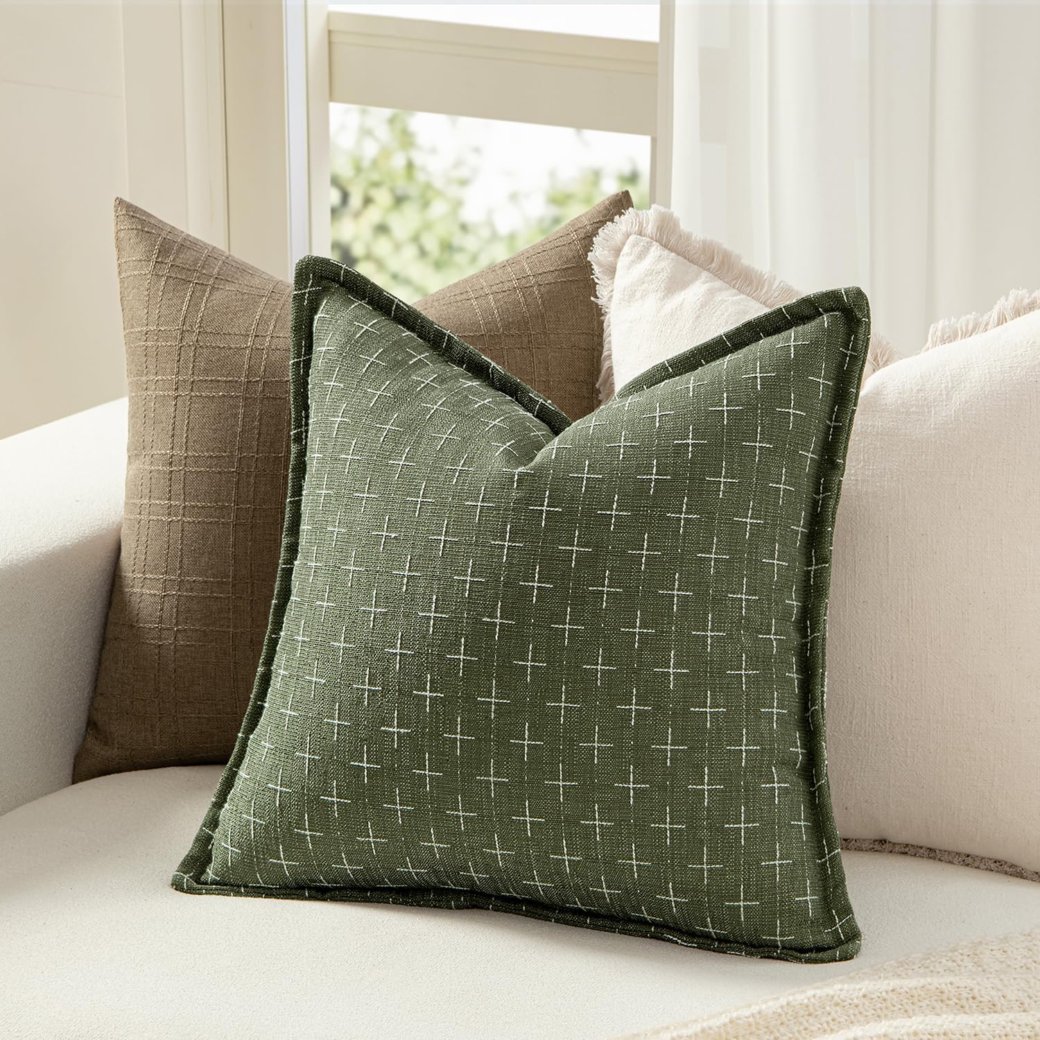MIULEE Decorative Burlap Linen Throw Pillows Covers 18×18 Inch Olive Green Spring Vintage Couch Pillow Covers Modern Farmhouse Pillowcase Woven Textured Cushion Cases for Sofa Bed Livingroom