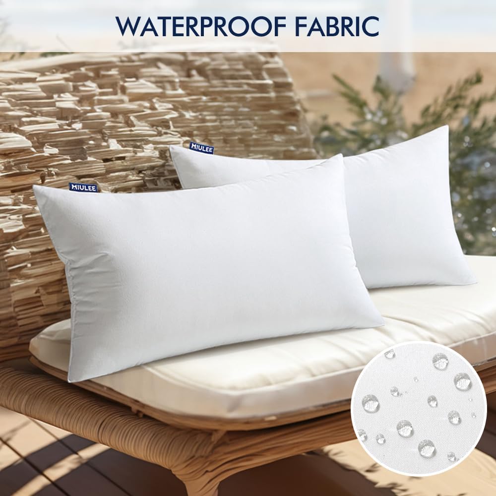 MIULEE Pack of 2 12×20 Inch Outdoor Pillow Inserts Waterproof Decorative Throw Pillow Insert, Rectangle Lumbar Garden Pillow Form for Patio Sofa Couch