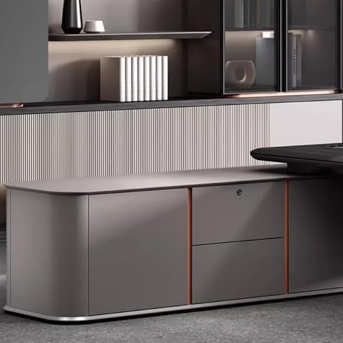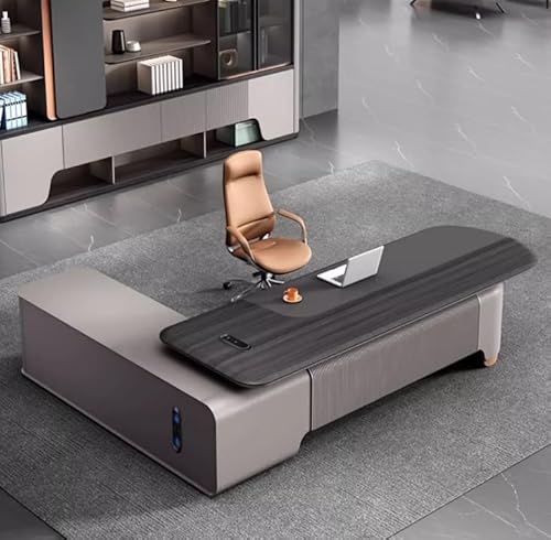 Modern Executive Desk Modern L Shaped Desk with Drawers, Wood Executive Office Table with Lateral Cabinet, Business Furniture Desk Workstation Large Storage Desk for Home Office, Business for Business