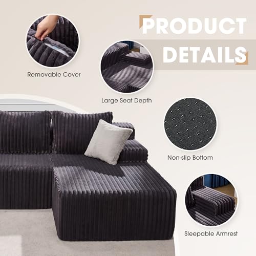 Comfortable Sectional Couch: The cloud couch is made of breathable fabric and high-resilience memory foam with removable back cushion and neck pillow, providing you with a super comfortable experience. The anti slip design at the bottom ensures the stability of the sofa. The comfy sofa cover is machine washable and can be cleaned when dirty.
