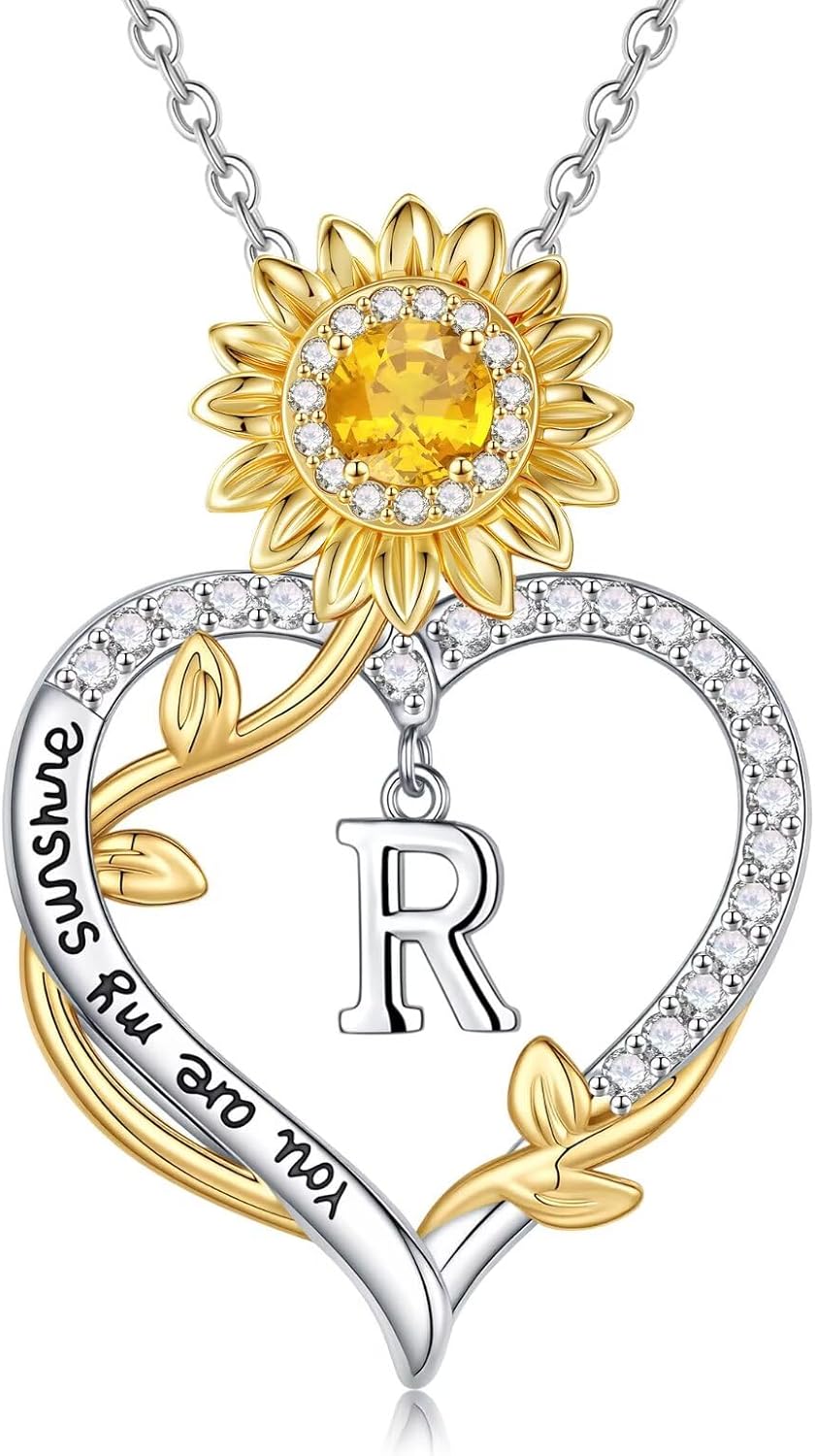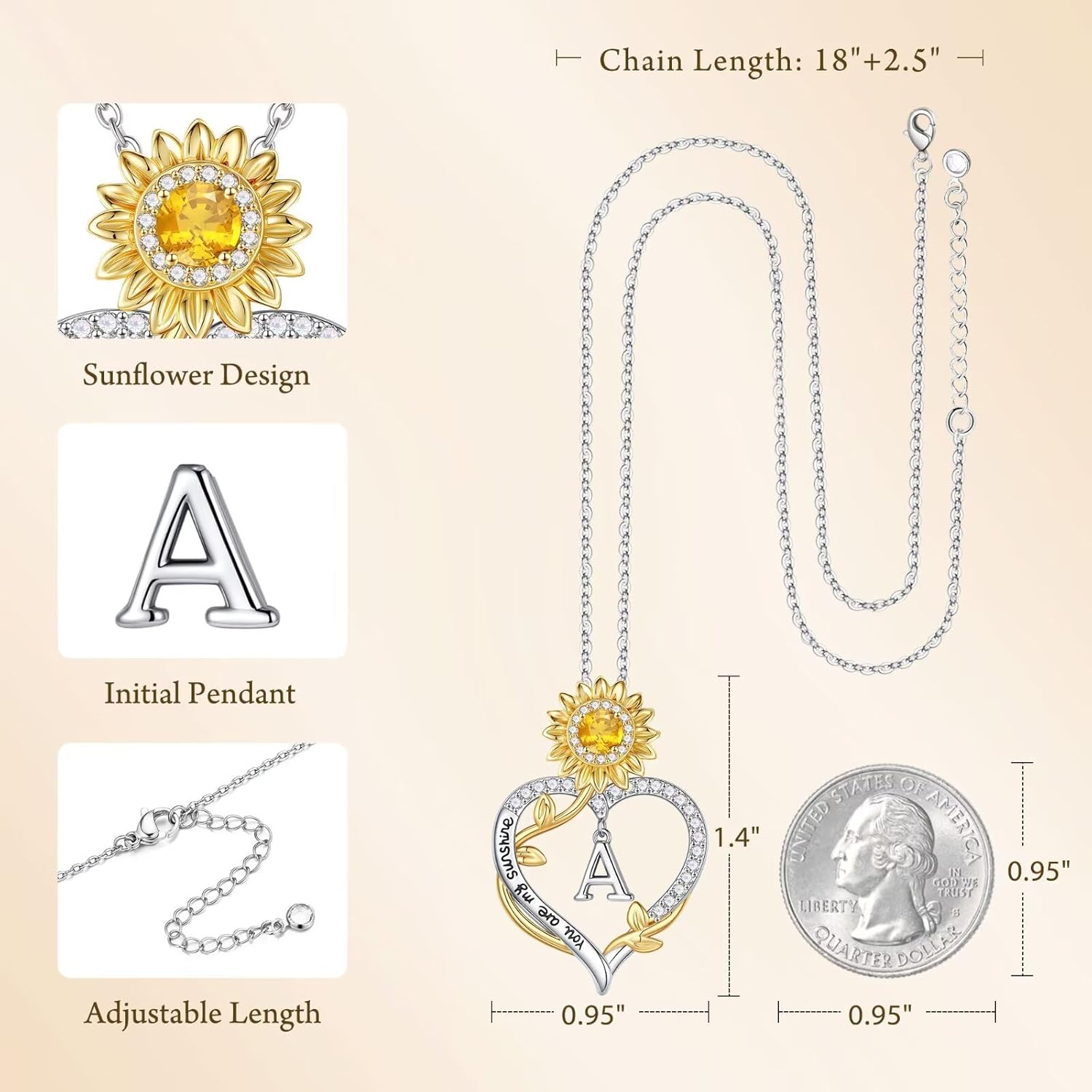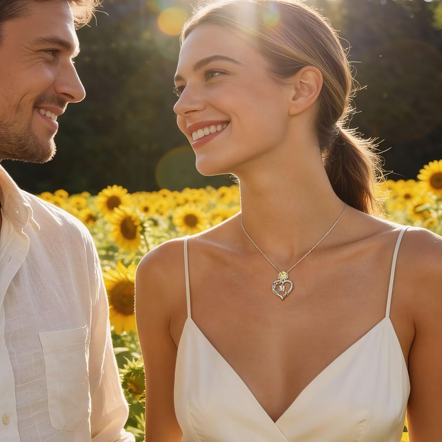 MONOOC Valentines Gifts for Her Women Teen Girls – 14K-White-Gold-Plated Sunflower Heart Initial Necklaces, Anniversary Birthday Gifts for Women, Jewelry Gifts for Wife Girlfriend Mom Daughter