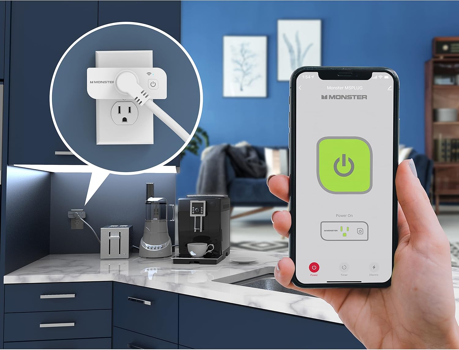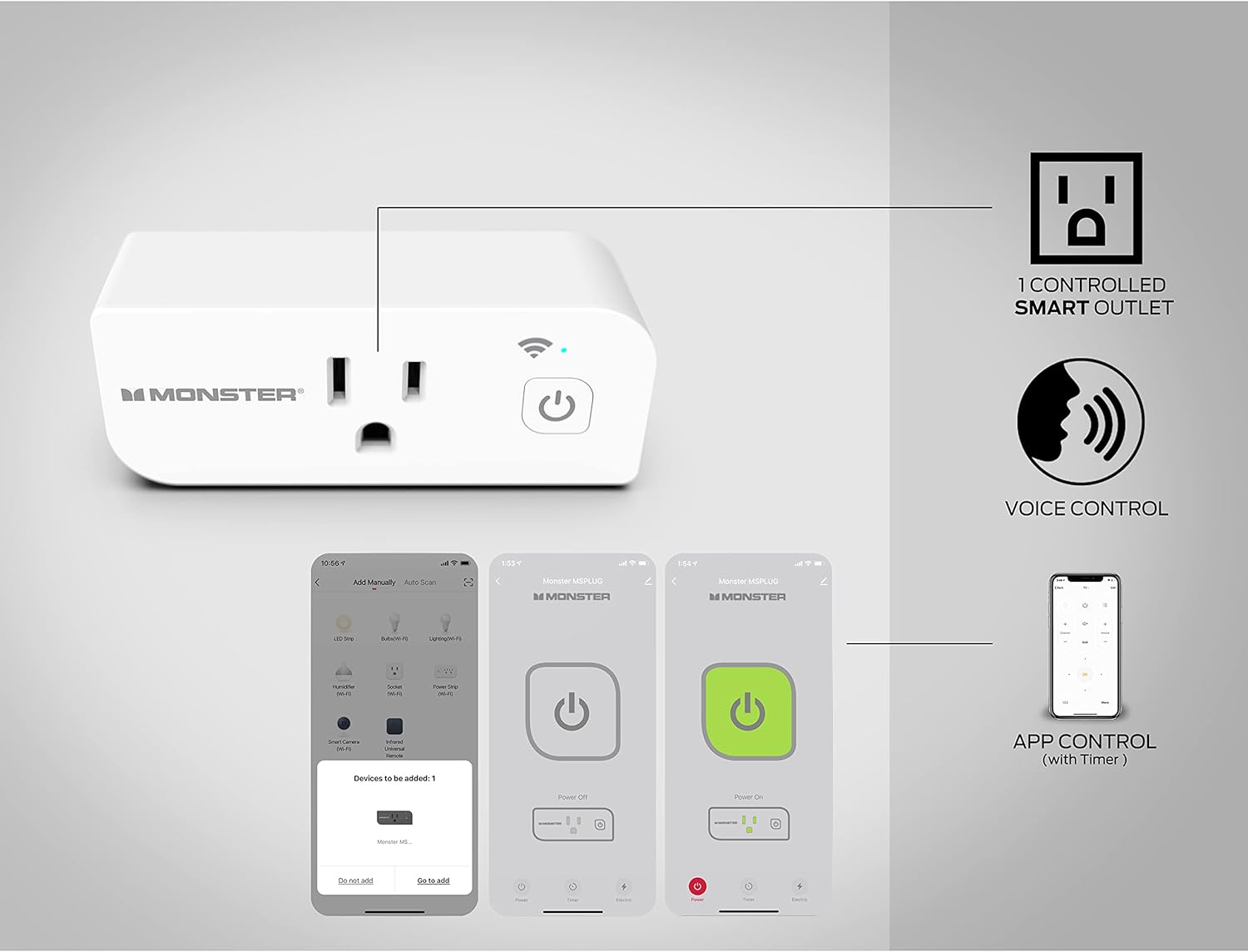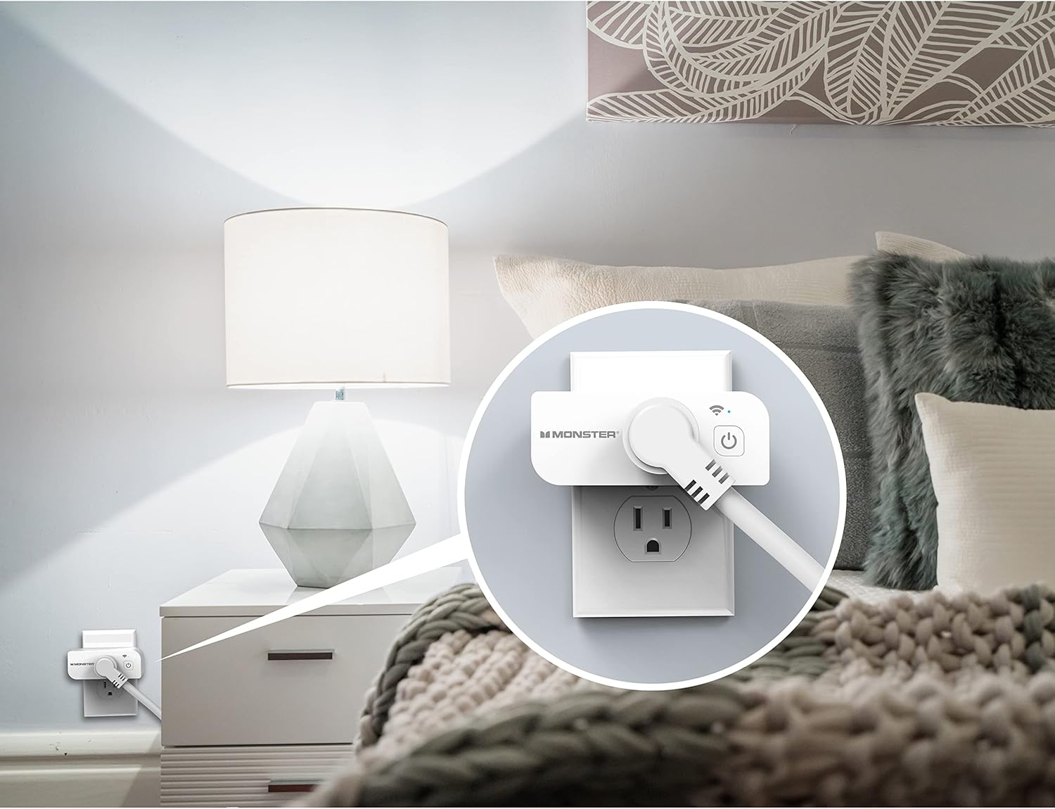 Monster Smart Power Outlet WiFi Control for Indoor Use with Monster App – Voice Control with Amazon Alexa and Google Assistant – 1 Outlet White