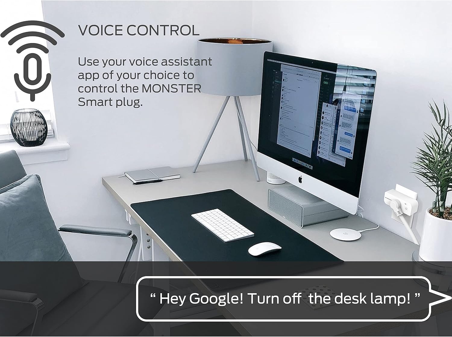 Scheduling: Use timer or countdown schedules via voice control or the Monster App set your smart plug to automatically turn on and off any home electronic appliances such as lamps, fan, Christmas lights etc.