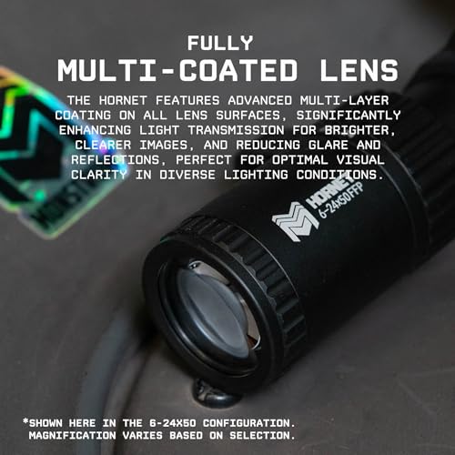 Monstrum Hornet 6-24×50 FFP Rifle Scope | Includes Zero Stop, Bubble Level Scope Rings, and Detachable Sunshade | MIL Reticle