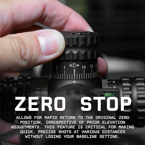 1/8 MOA/click windage and adjustment knobs with an easy-to-use zero stop mechanism for the elevation turret. Set zero stop at your designated elevation setting and return to zero effortlessly at any time.