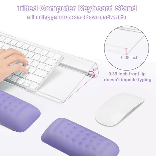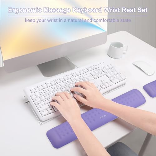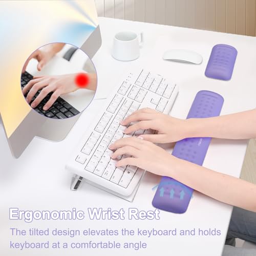 MOSISO Computer Keyboard Stand&Wrist Rest Support for Keyboard &Mouse Set,Ergonomic Wrist Rest Support Set, Memory Foam Pain Relief Easy Typing Wrist Pad Home/Office Non-Slip Wrist Cushion, Purple