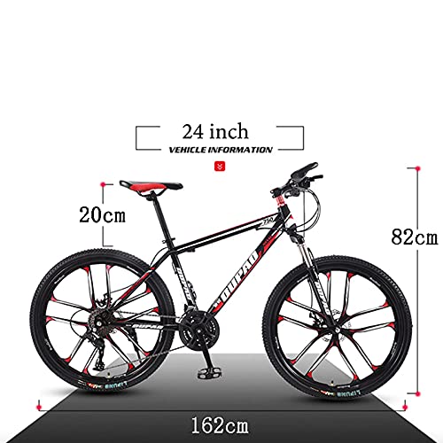 Mountain Bike,Adult Offroad Road Bicycle 24 Inch 21/24/27 Speed Variable Speed Shock Absorption, Teenage Students, Men and Women Sports Cycling Racing Ride 10wheels- 24 SPD (Bk bu 3wheels)
