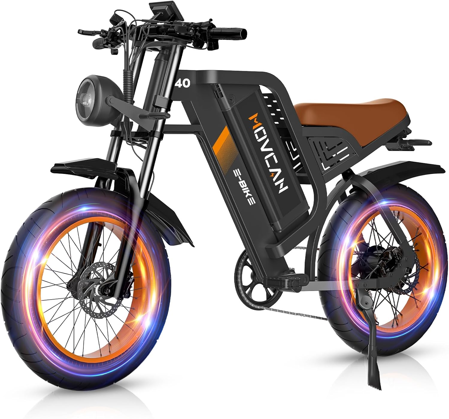 【Powerful 1500W Motor】Movcan V40 electric bike Built-in a 1500W brushless hub motor, electric bike for adults can reach a top speed of 35MPH, robust motor delivering 80N.M torque, easily overcome 35° steep hills. Even on off-road, steep paths, the electric dirt bike can easily go uphill. Allowing you to explore new places with confidence!